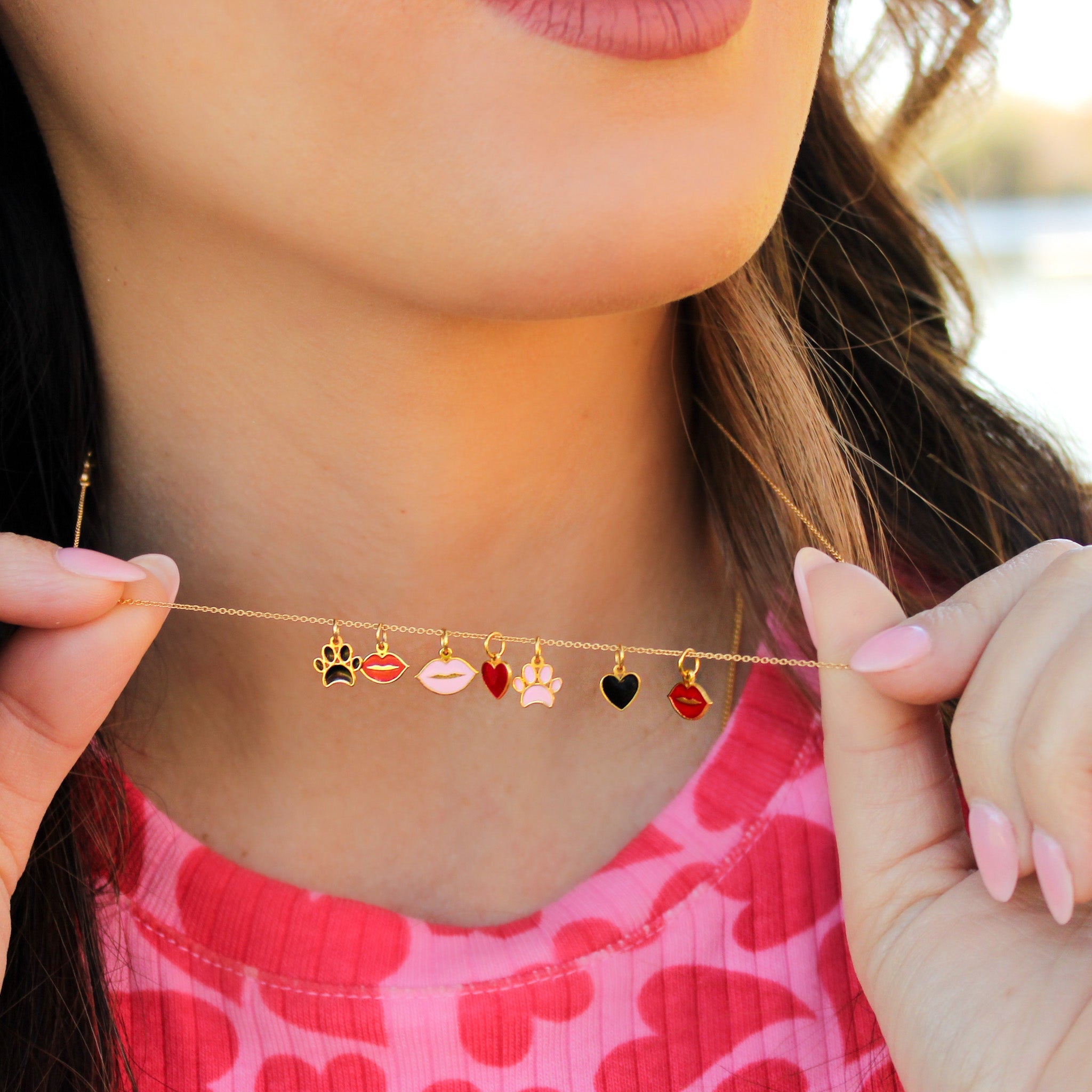 14K Solid Yellow Gold Lips Custom Enamel Pendant