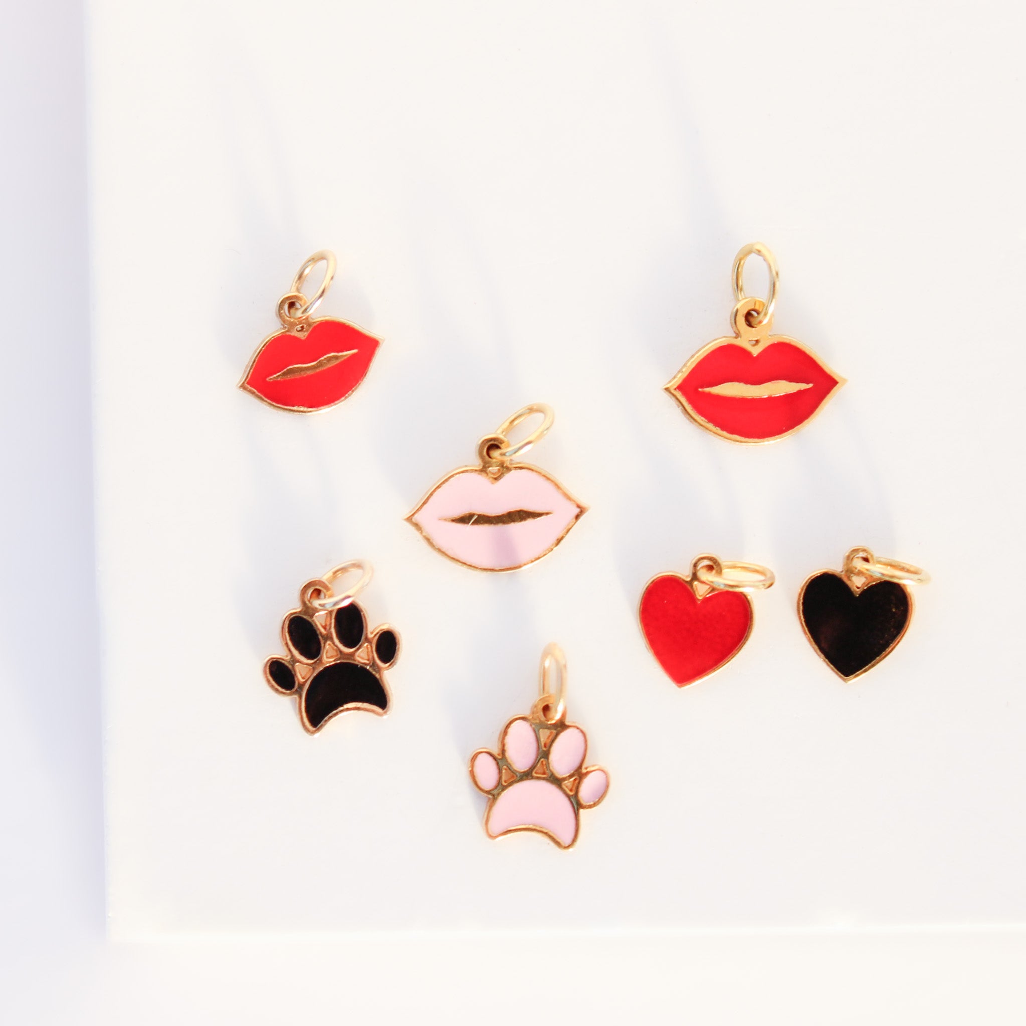 14K Solid Yellow Gold Dog Paw Custom Enamel Pendant
