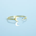 14K Solid Yellow Gold Moon & Star Cuff Ring