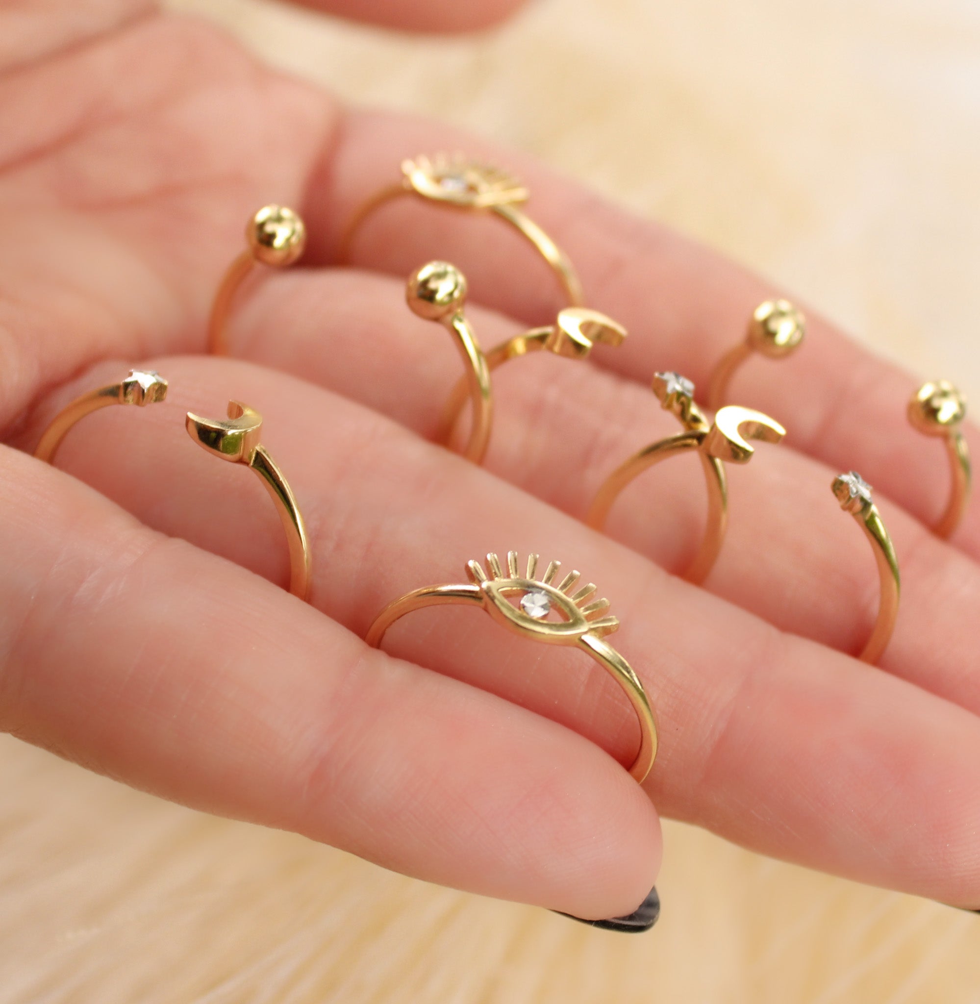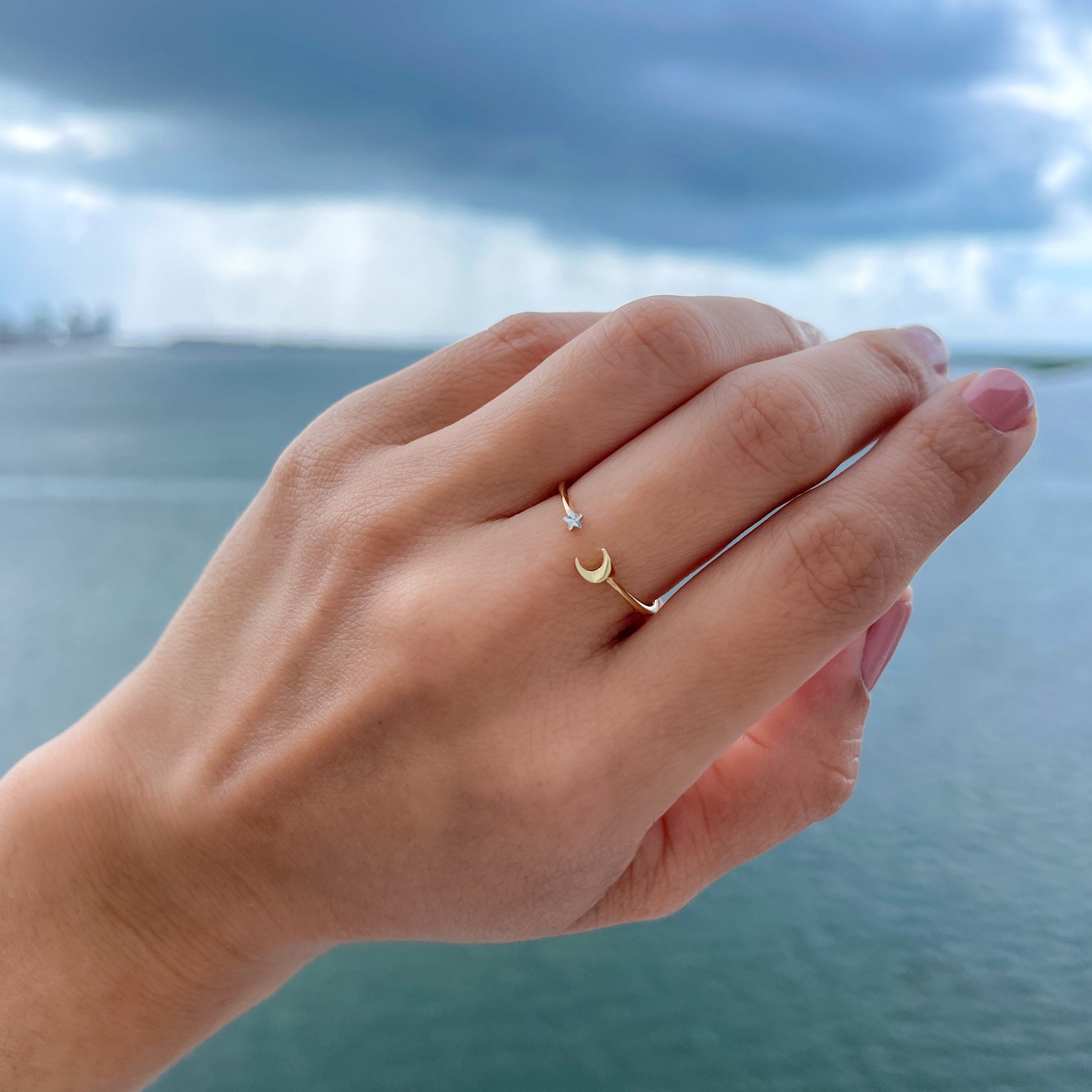 Add a celestial touch to your jewelry collection with this 14K solid yellow gold cuff ring, featuring a delicate moon and star design. Adjustable and lightweight, it’s perfect for stacking with other rings or wearing solo as a subtle statement. A versatile, timeless piece that brings a hint of magic to any outfit.