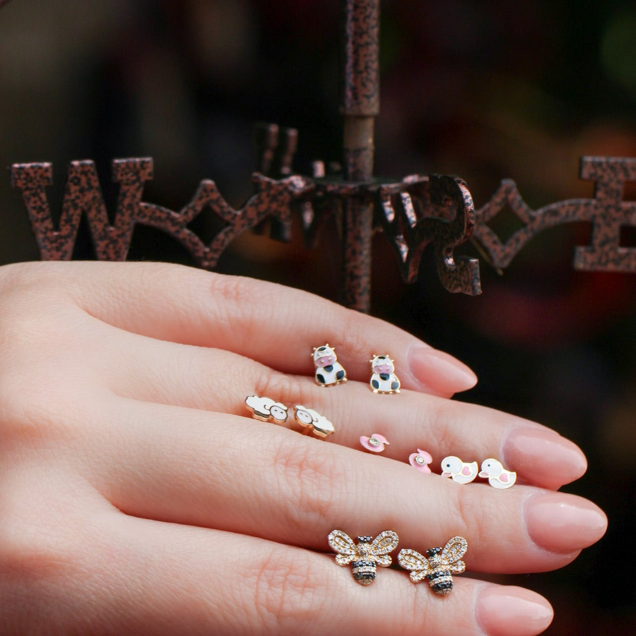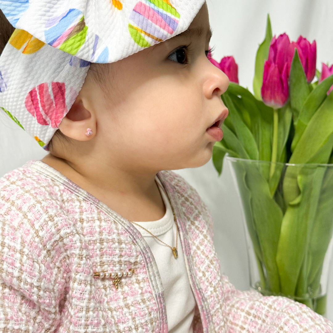 Enamel jewelry is the perfect way to add color to your little baby girl days. Crafted beautifully in 14k yellow gold, a naturally hypoallergenic precious metal that is completely safe for children with sensitive skin.