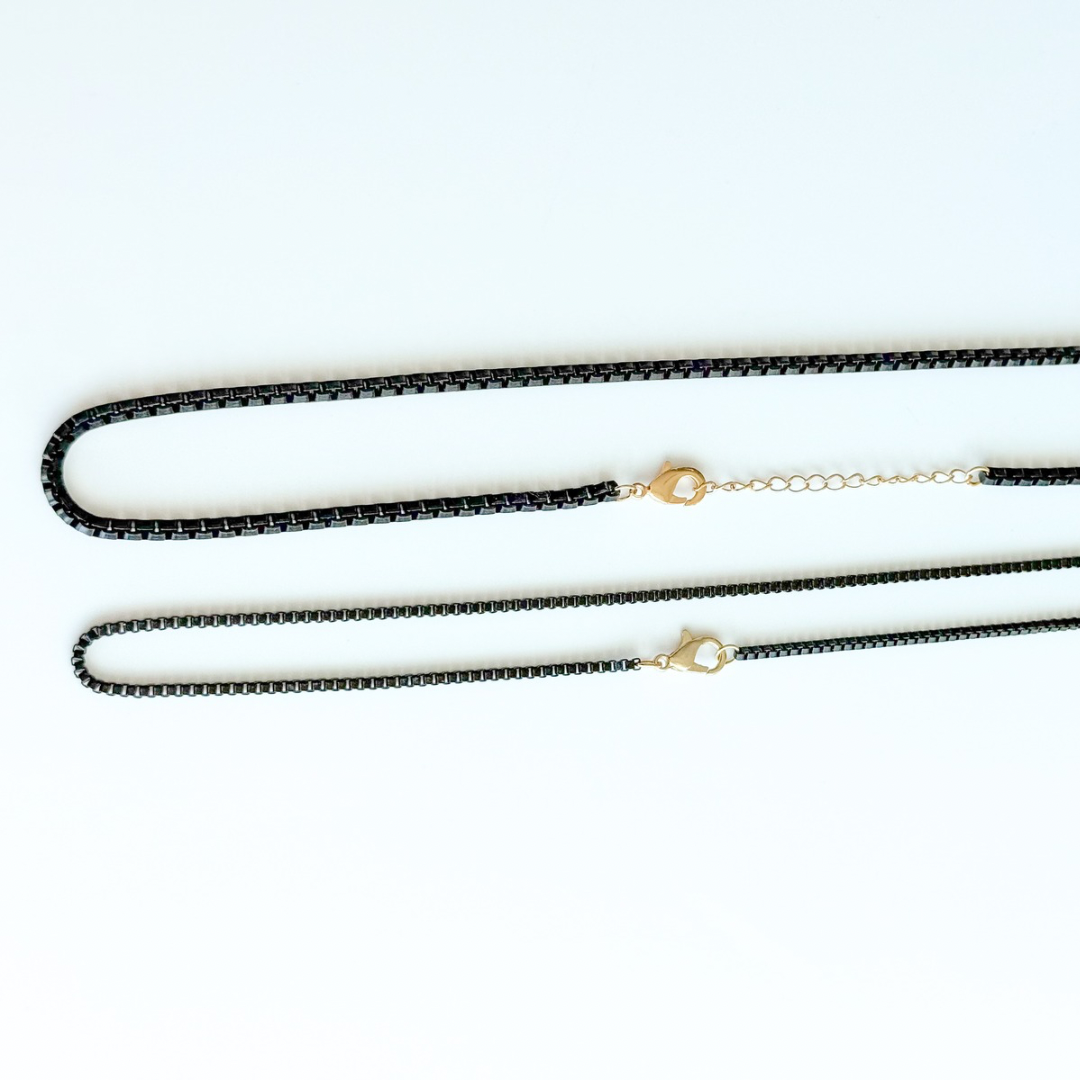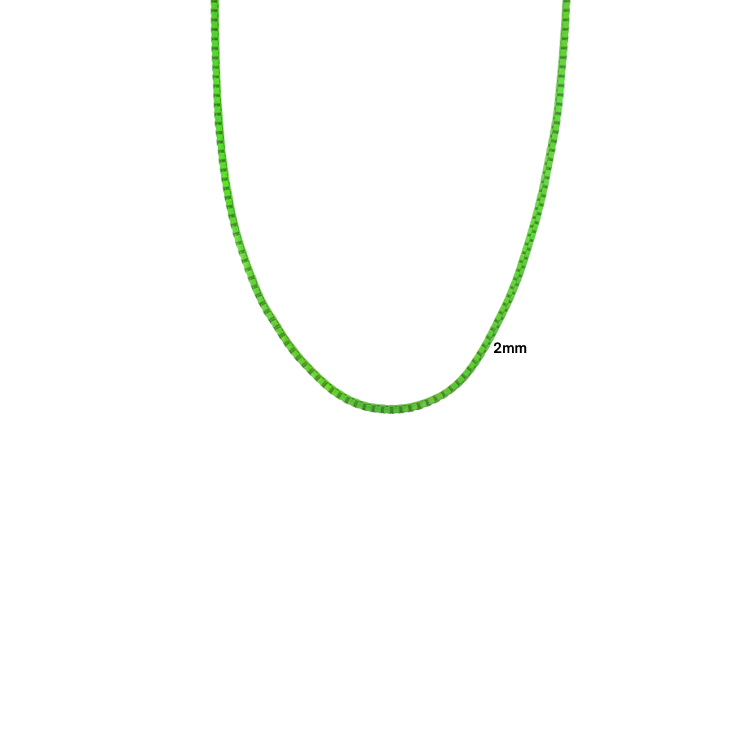 Add a vibrant touch to your jewelry collection with this 18K gold filled colorful enamel box chain necklace. Available in multiple colors and in two thicknesses—2mm and 3mm—this chain comes in a standard 16” length, making it perfect for layering or wearing solo. Lightweight, durable, and stylish, it’s ideal for everyday wear or gifting to someone special.