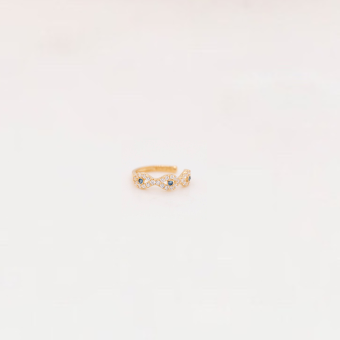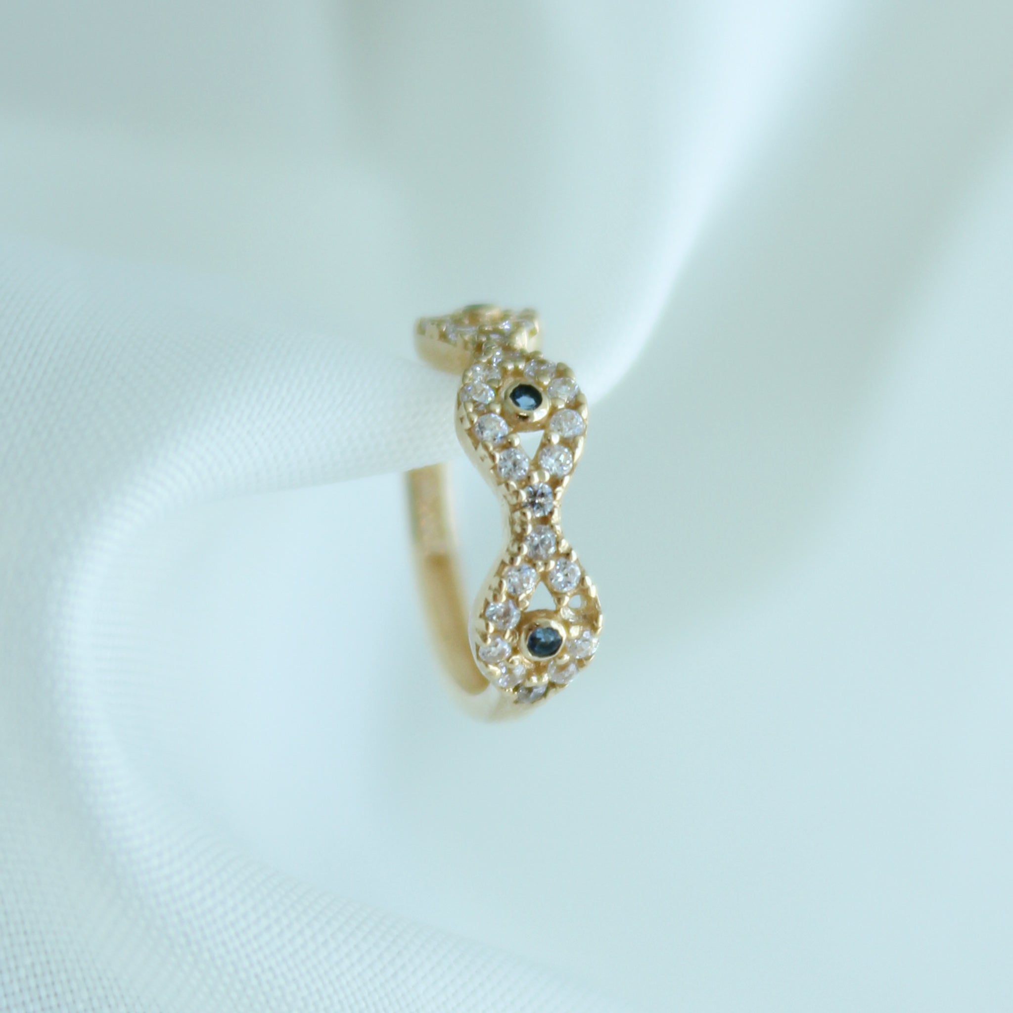 14K Solid Yellow Gold CZ Evil Eye Ear Cuff