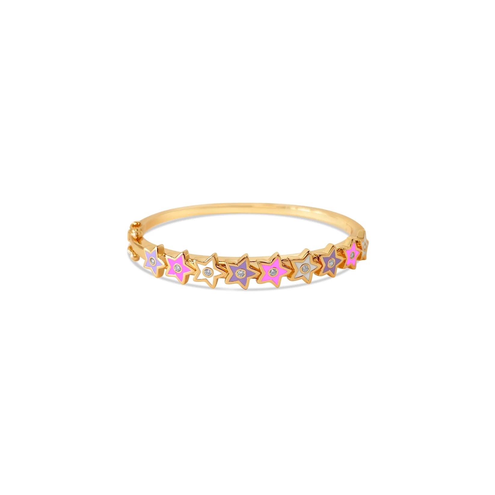 18K Gold-Plated Brass Girl’s Bangle with Enamel Flower Station