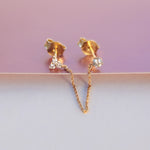 18K Solid Yellow Gold Two-Piercing Diamond Earrings