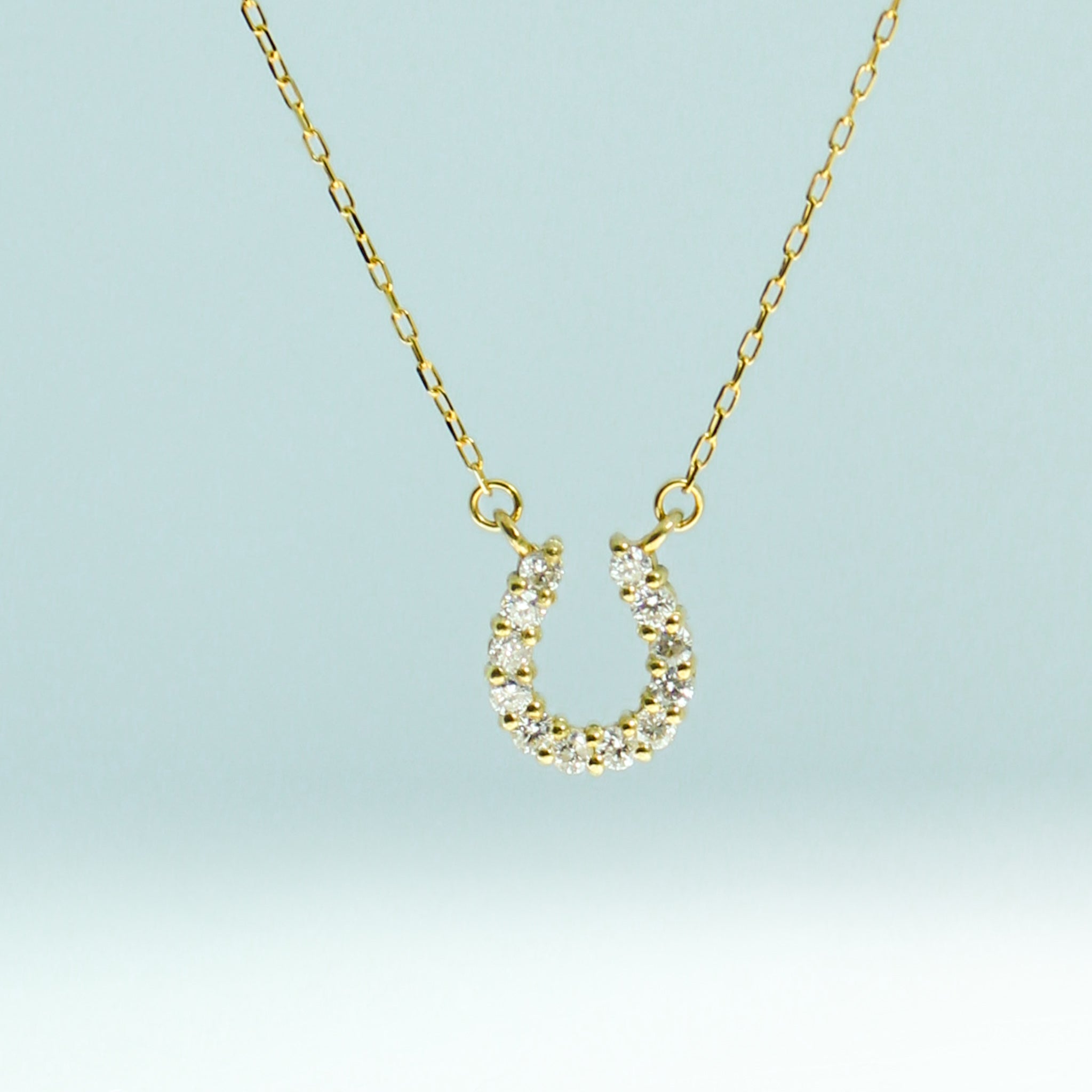 18K Solid Yellow Gold Pave Diamond Horseshoe Necklace