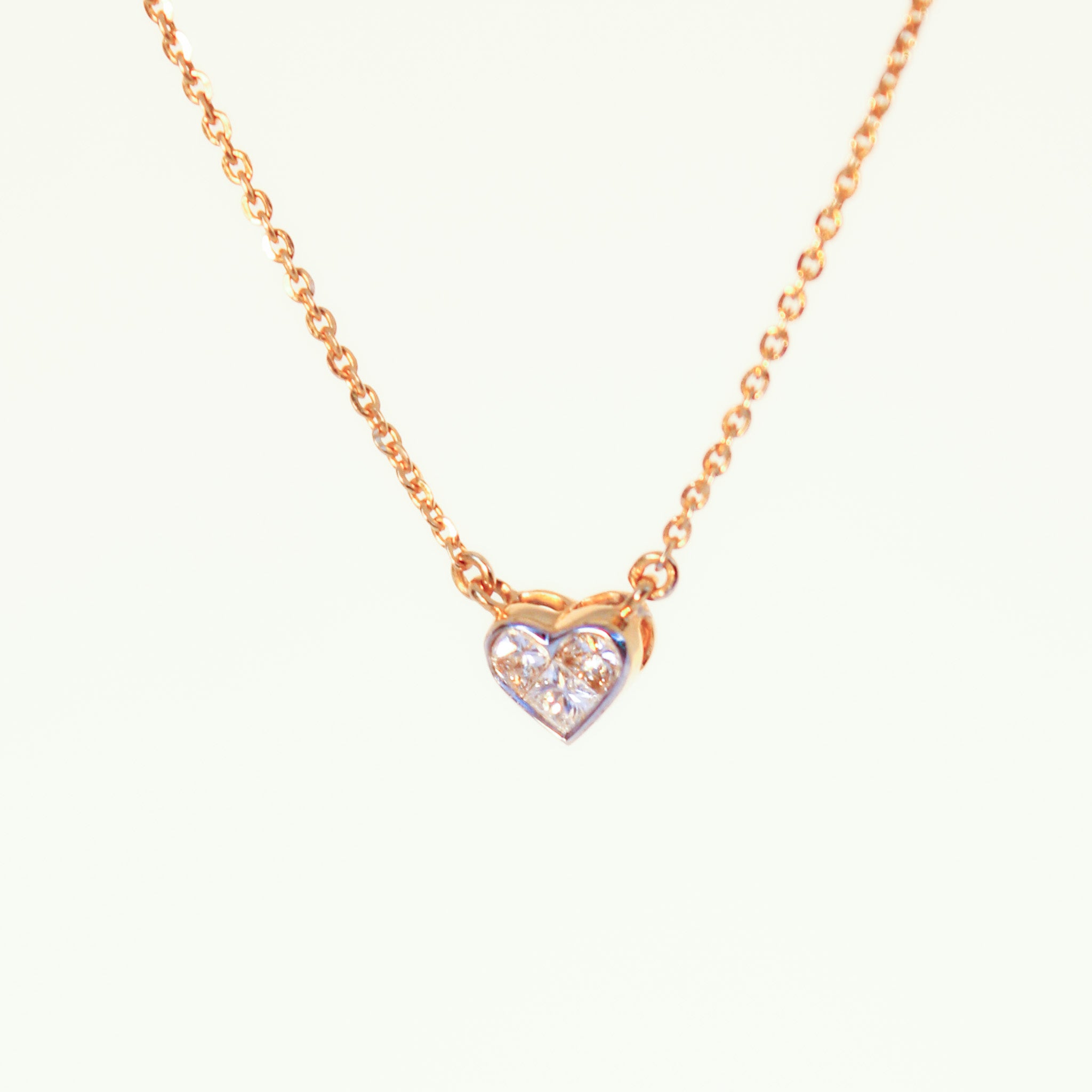 18K Solid Yellow Gold Rosalina Heart Diamond Necklace
