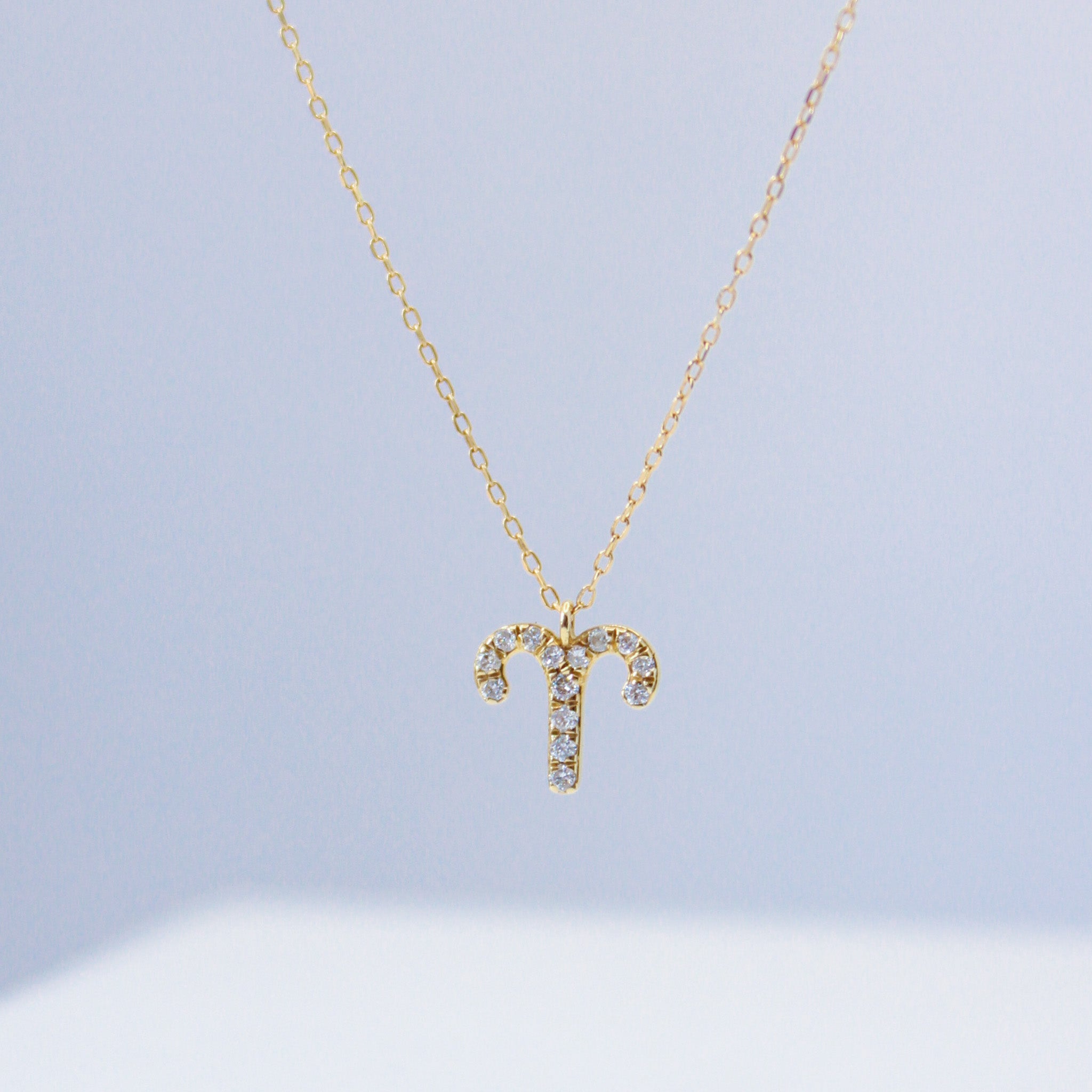 18K Solid Yellow Gold Zodiac Sign Diamond Necklace