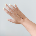 A delicate and symbolic 14K solid yellow gold hand-chain bracelet featuring a vibrant evil eye charm for protection and style. Designed in our signature clon hand-chain style, this piece connects gracefully from finger to wrist, creating an elegant, modern look. Perfect for everyday wear or as a meaningful gift, it adds a touch of intention, shine, and sophistication to any jewelry stack.
