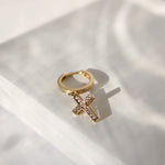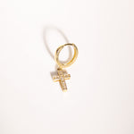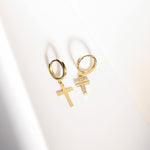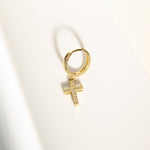 14K Solid Gold Unisex CZ Cross Single Huggie Hoop