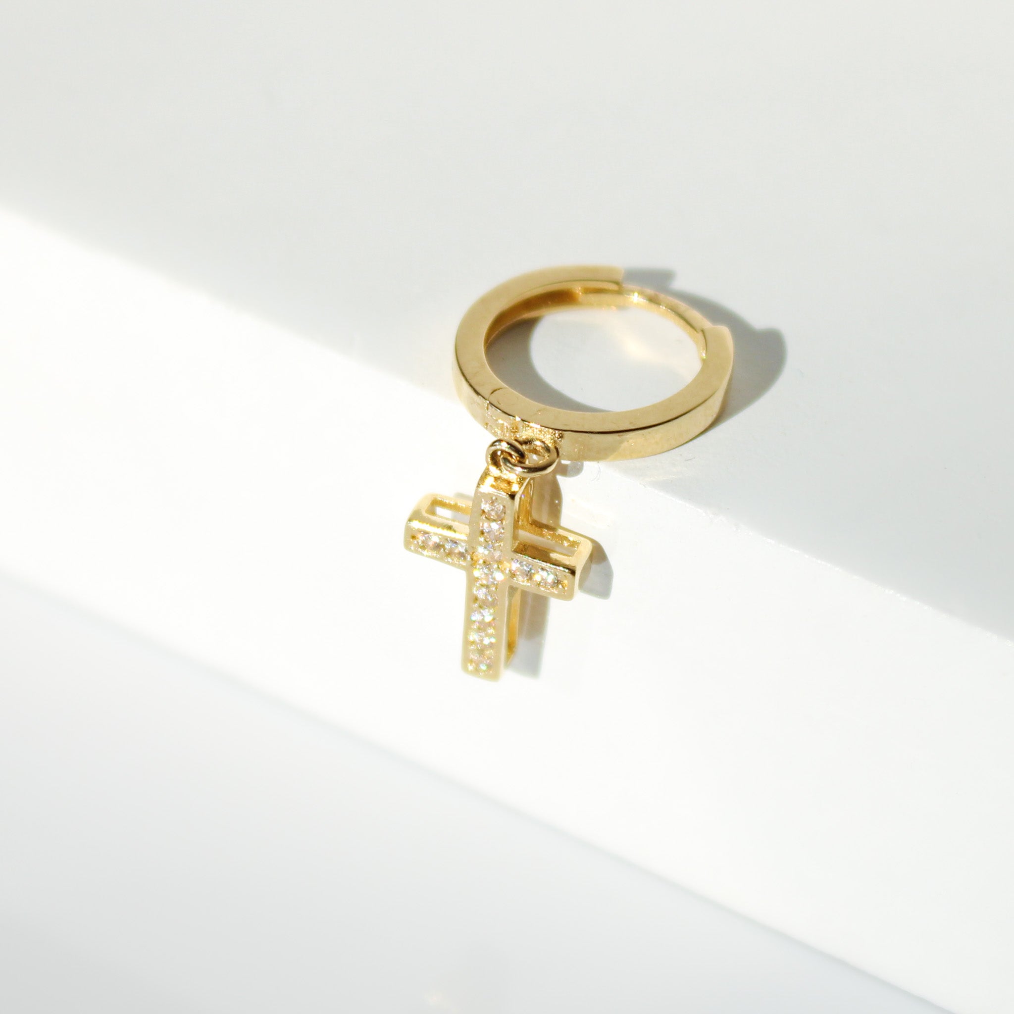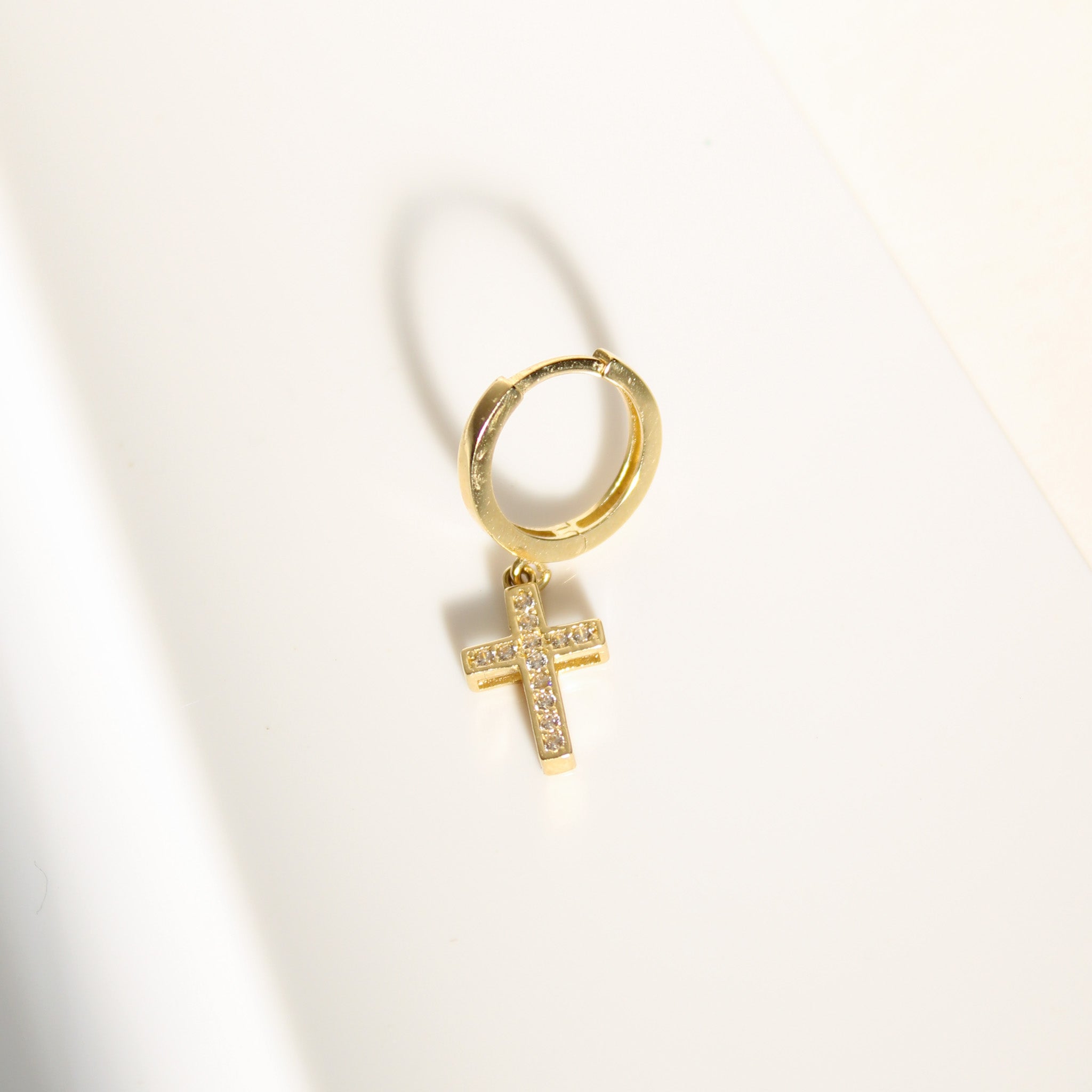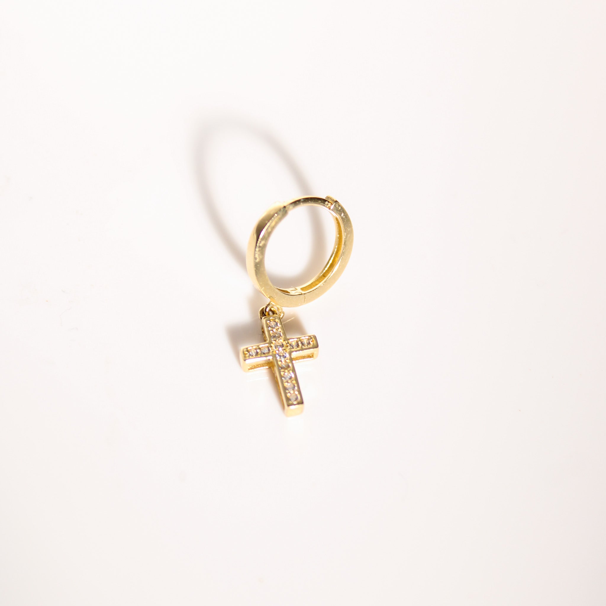 Elevate your everyday style with this 14K Solid Gold Unisex CZ Cross Single Huggie Hoop. Crafted in genuine solid gold—not plated or filled—this sleek hoop features a sparkling cubic zirconia cross, blending modern elegance with meaningful symbolism. Its versatile design is perfect for layering or wearing alone, suitable for both men and women. A stylish and timeless piece that adds a touch of faith to any look.