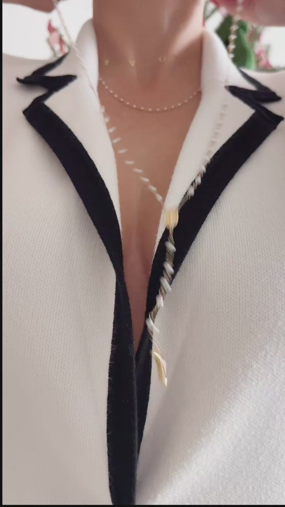 A rosary crafted with devotion, luxury, and timeless detail. This 14K Solid Yellow Gold Pearls Rosary Necklace features 59 hand-linked pearls, each measuring 3.52 mm, arranged along a classic 26″ length with a 4″ drop. Two symbolic elements complete this heirloom design: a double-sided Miraculous Medal and a reversible cross — Jesus on one side, plain on the other. A meaningful, refined piece meant to accompany your faith with beauty and purpose — perfect for gifting or wearing close to the heart every day.