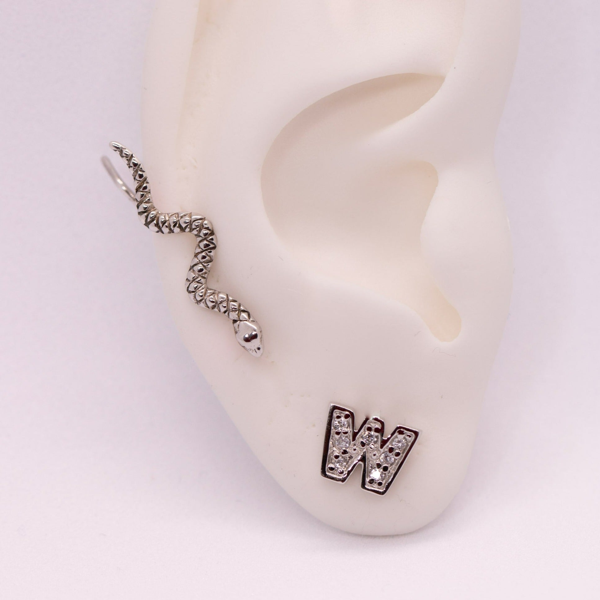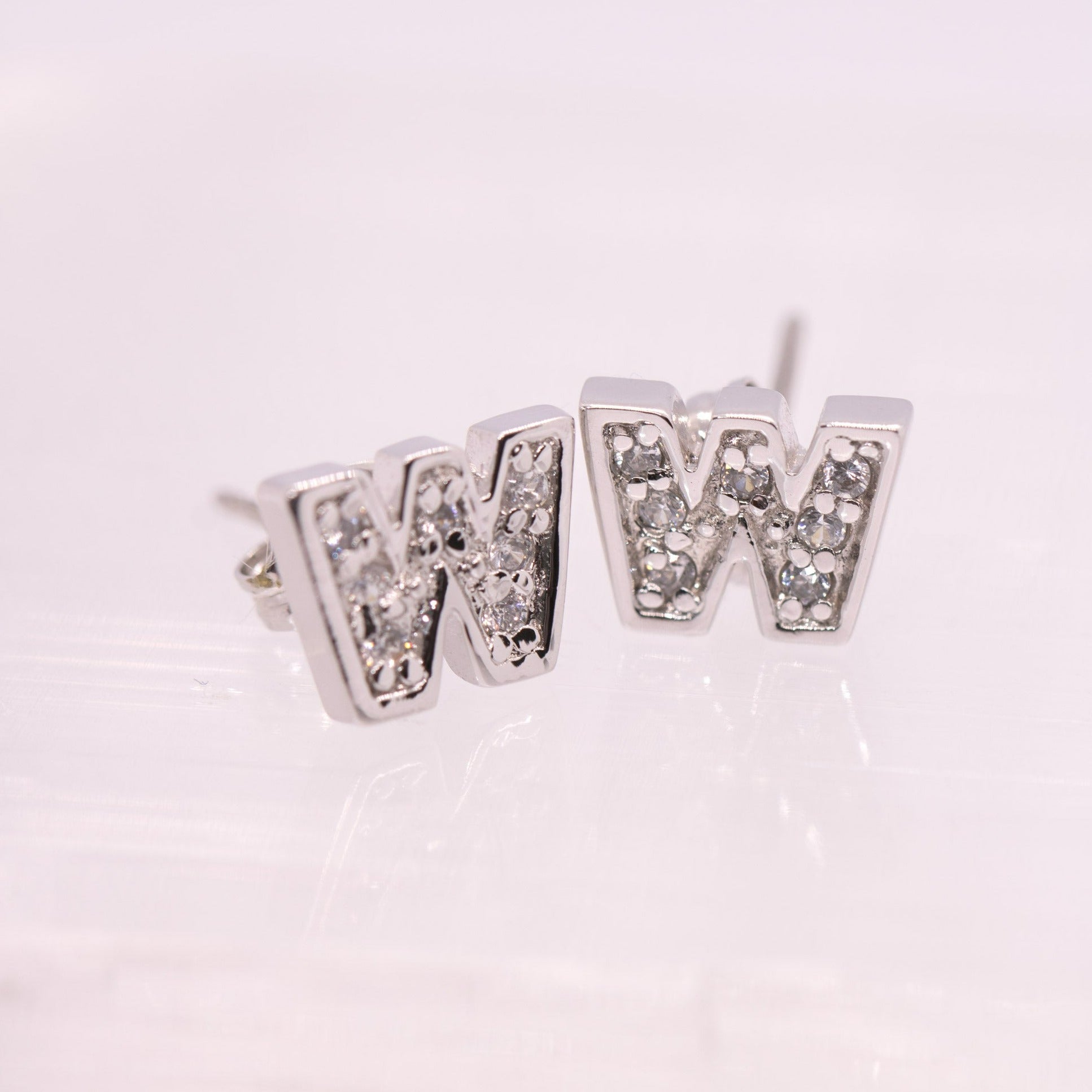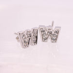 925 Sterling Silver W Initial Earrings with CZ