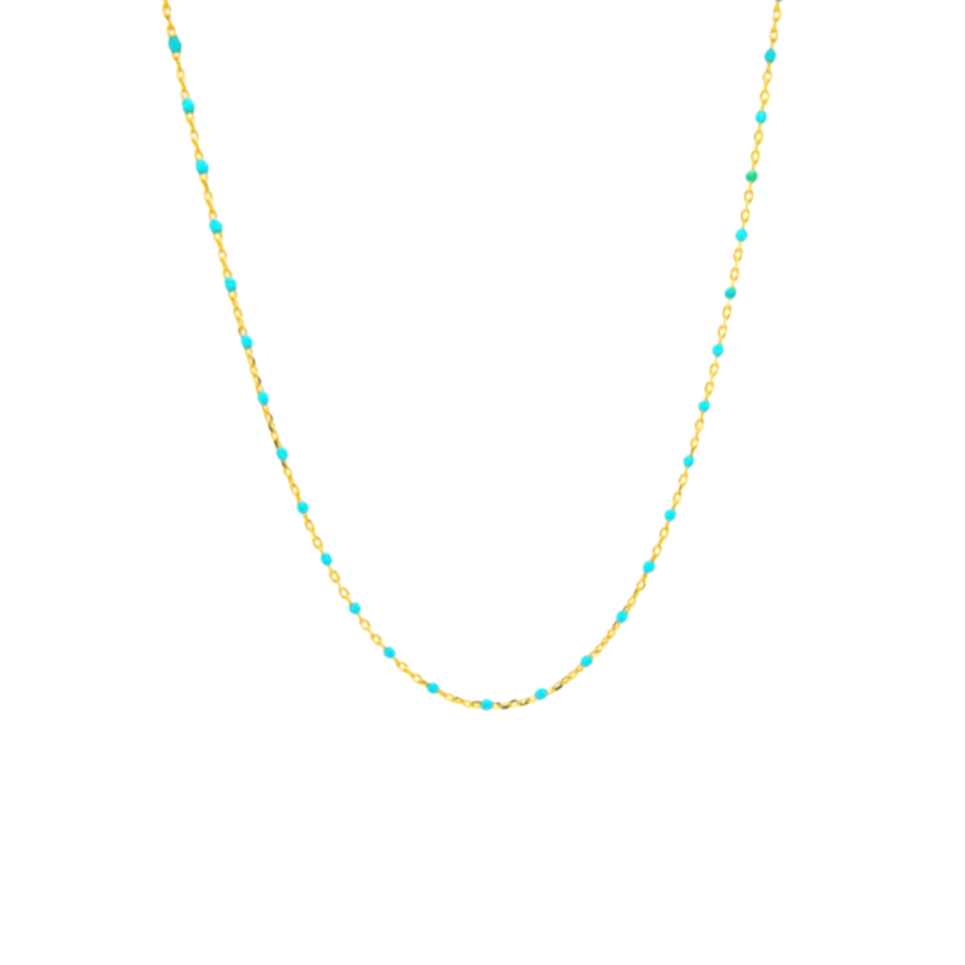 Elevate your everyday style with this vibrant 14K solid yellow gold necklace. Featuring delicate gold beads accented with colorful enamel details, this versatile piece brings a playful yet sophisticated touch to any outfit. Perfect for layering or wearing solo, it’s a modern statement of elegance and personality. Why You’ll Love It: The combination of lustrous gold beads and colorful enamel adds a cheerful and unique flair to your jewelry collection. Its lightweight and versatile design makes it ideal for everyday wear, special occasions, or as a thoughtful gift for someone you love.
