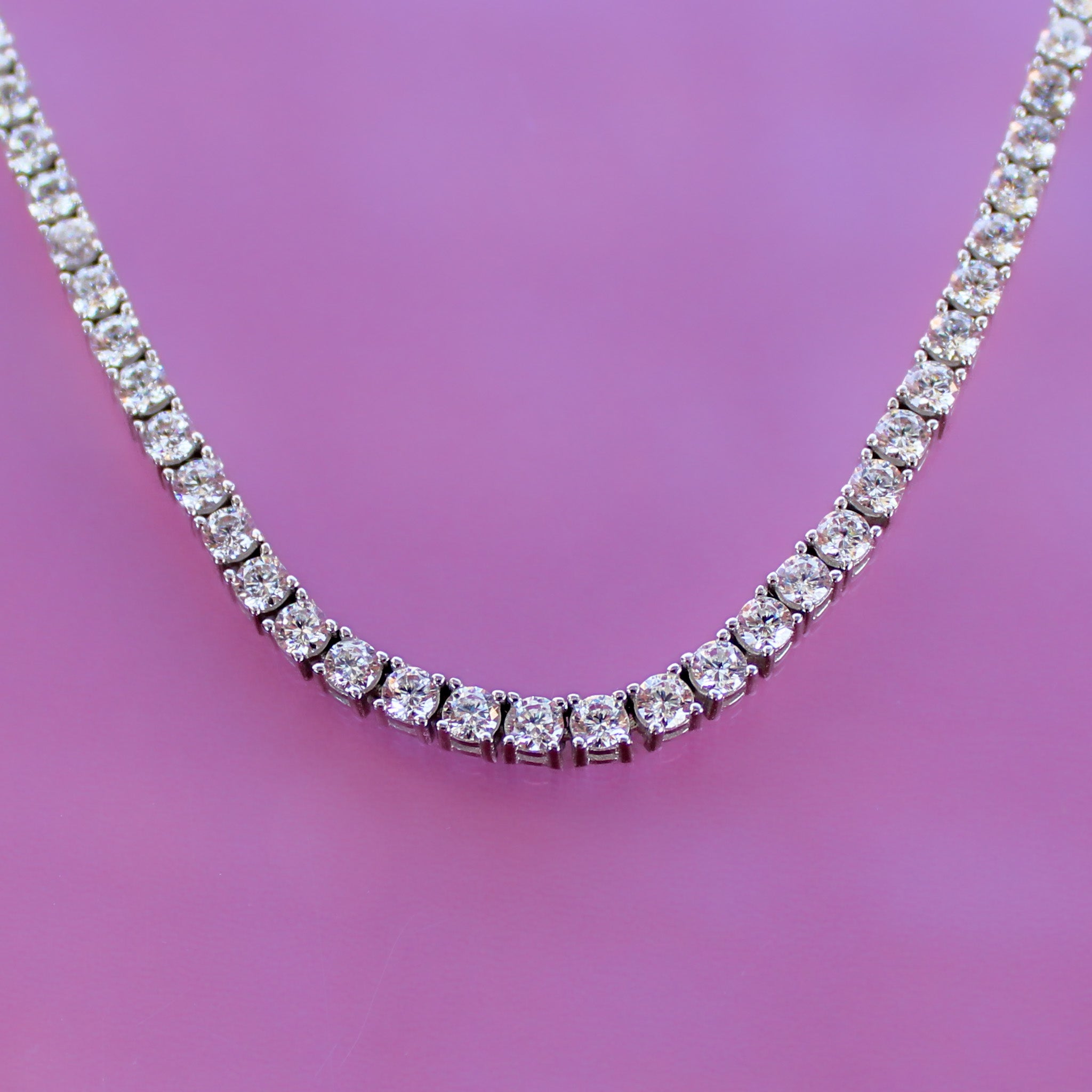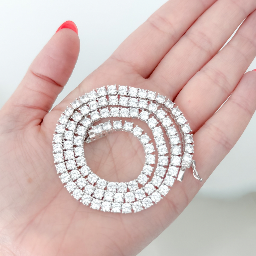 This 925 sterling silver tennis necklace features sparkling 4mm cubic zirconias for a brilliant, timeless shine. Perfect for layering or wearing alone, it’s an elegant piece that adds sophistication to any look.