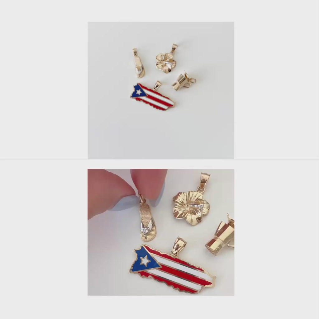 Celebrate your Puerto Rican pride with this exquisite 14K solid gold pendant featuring a detailed enamel map of Puerto Rico. Expertly crafted for both elegance and meaning, this pendant is perfect for layering with other necklaces or wearing solo as a statement piece. A thoughtful gift for anyone with a love for the island or a connection to their roots.