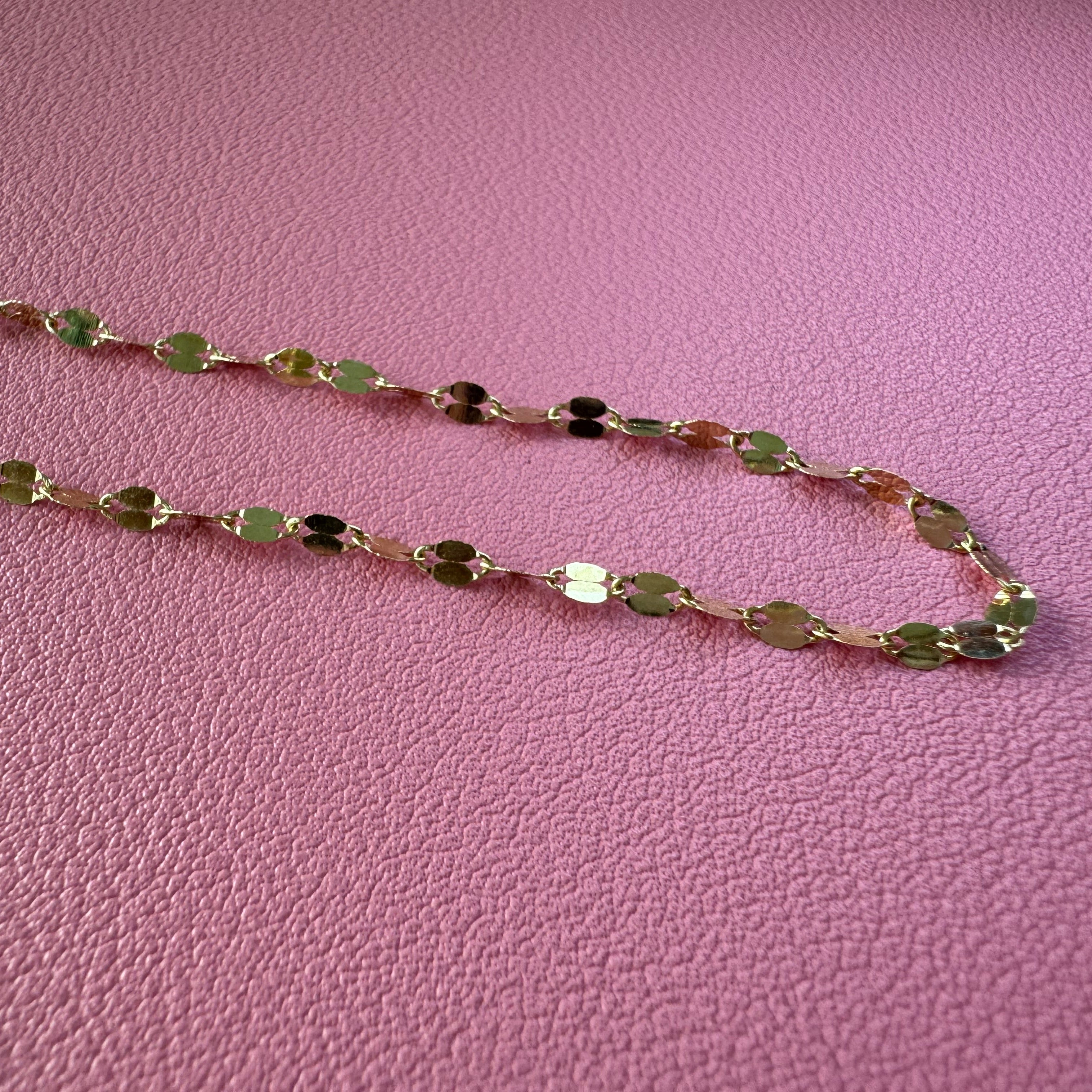 Elevate your everyday style with this 14K solid gold mirror chain necklace. Its sleek 2.5mm design reflects light beautifully, creating a subtle yet stunning shine. Perfect for layering or wearing solo, this necklace is a timeless piece that adds elegance to any outfit.