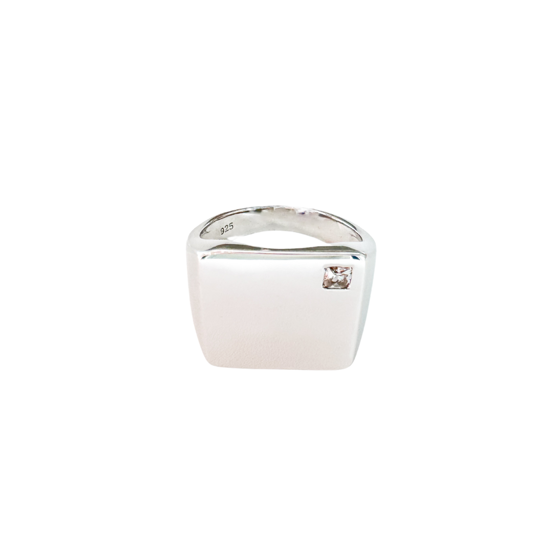 925 Sterling Silver CZ Square Unisex Ring