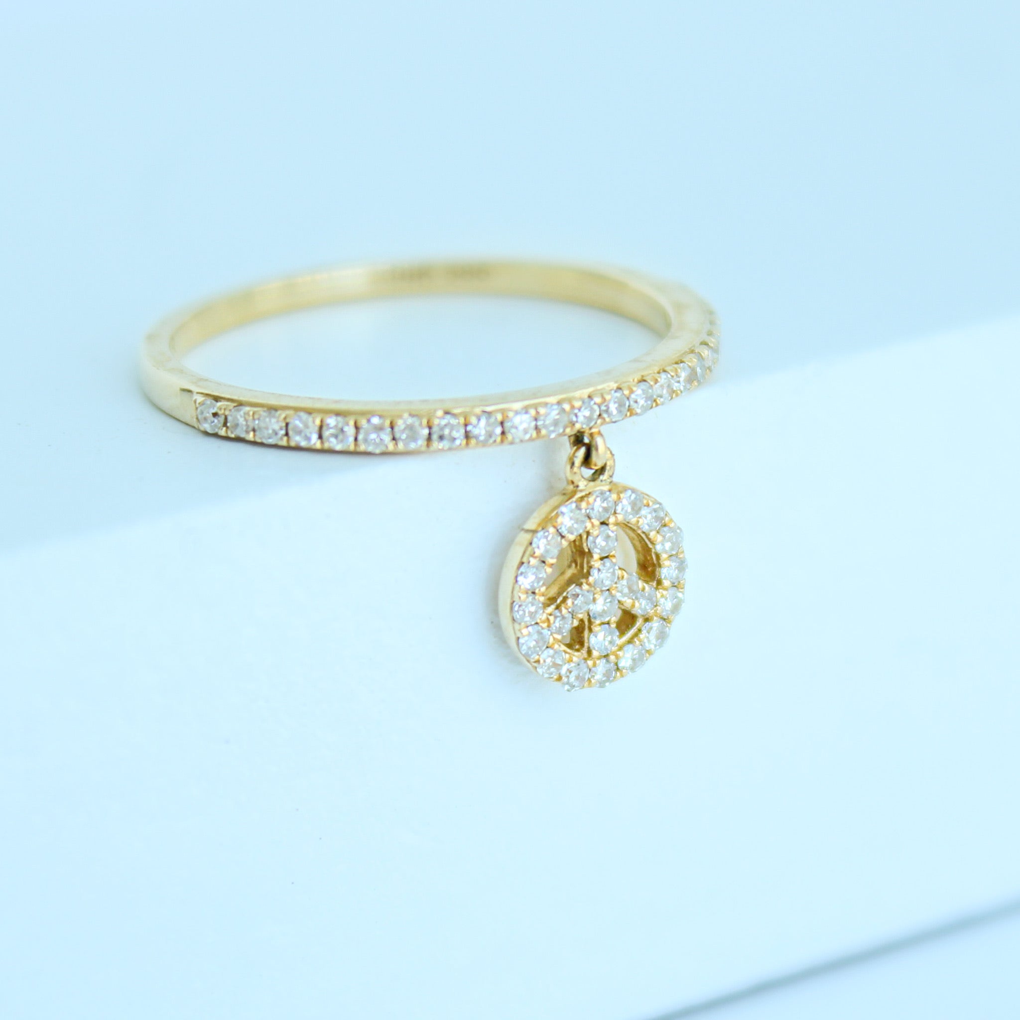14K Solid Yellow Gold Peace and Love Charm Ring