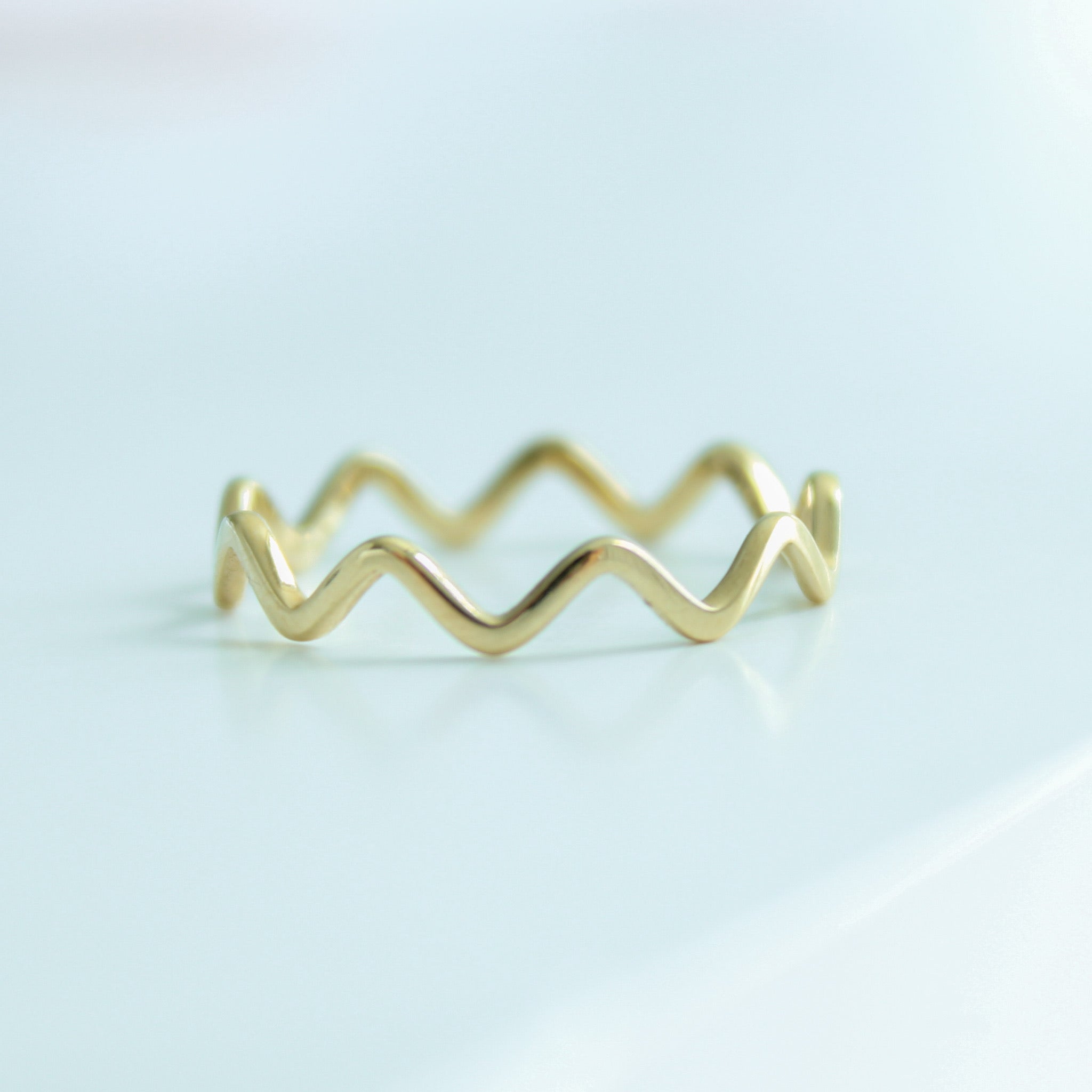 14K Solid Yellow Gold Wavy Minimalist Ring