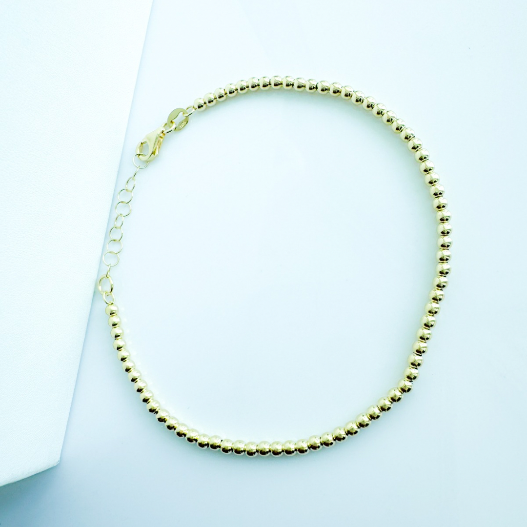 Elevate your everyday look with our 14K Solid Yellow Gold Bead Bracelet, crafted with perfectly polished 2.5mm beads that reflect timeless sophistication. Made entirely of solid 14K yellow gold, this bracelet offers a luxurious shine and a smooth, comfortable fit — perfect for stacking or wearing solo. Its minimalist design makes it a versatile piece for any occasion, from casual elegance to evening glamour. A true staple in every jewelry collection.