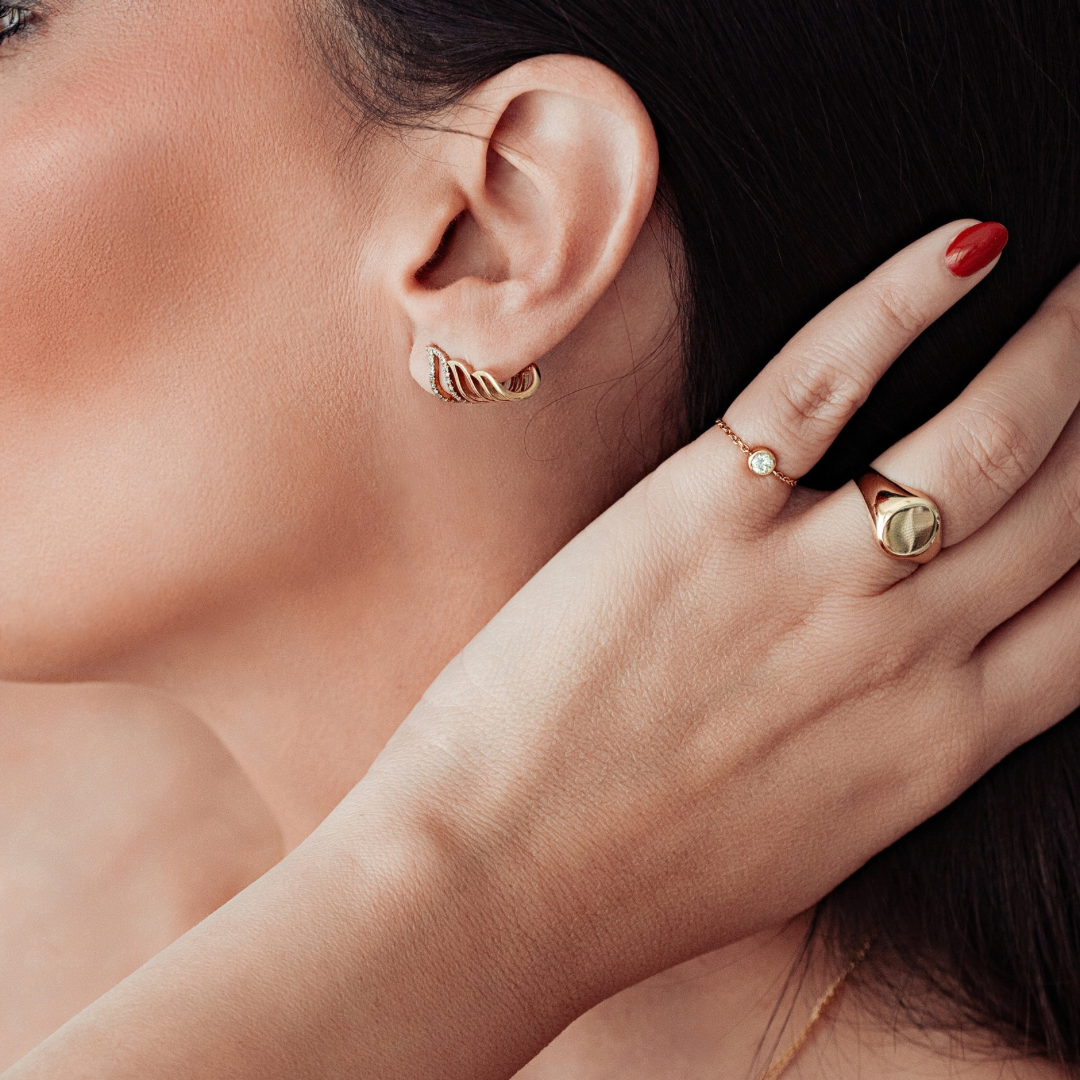Effortlessly elegant — this 18K Yellow Gold Bezel Diamond Chain Adjustable Ring brings together modern design and timeless sparkle. Crafted in solid 18K yellow gold, the ring features a delicate bezel-set diamond that glows softly against a fine gold chain band. Its adjustable fit offers both comfort and versatility, making it perfect for everyday wear or stacking with other favorites. A refined piece that moves with you — light, luminous, and made to shine effortlessly.