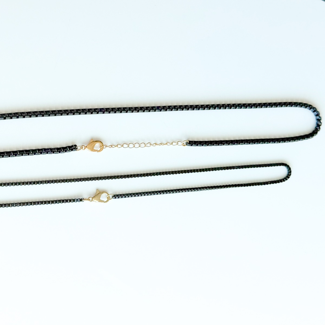 Add a vibrant touch to your jewelry collection with this 18K gold filled colorful enamel box chain necklace. Available in multiple colors and in two thicknesses—2mm and 3mm—this chain comes in a standard 16” length, making it perfect for layering or wearing solo. Lightweight, durable, and stylish, it’s ideal for everyday wear or gifting to someone special.