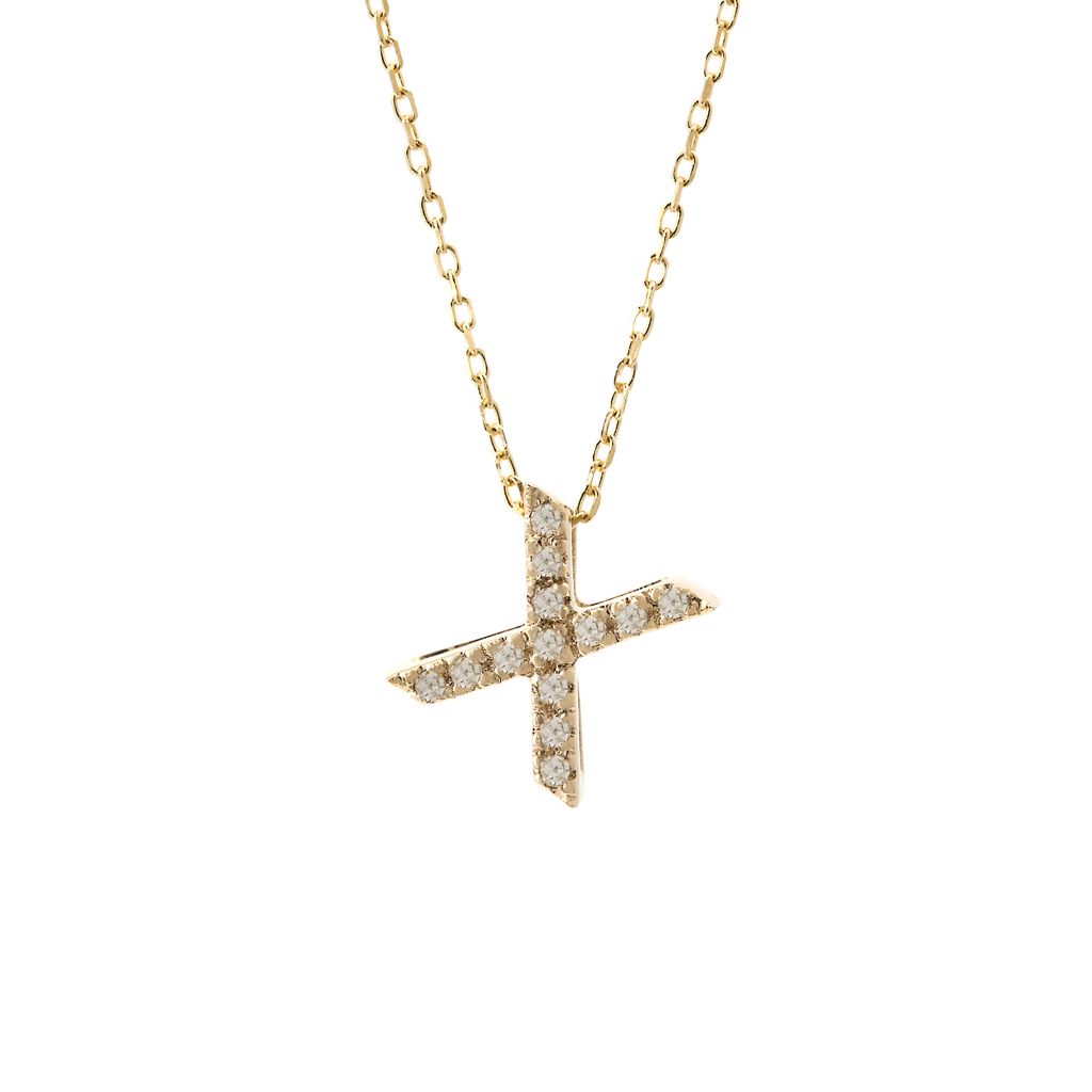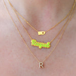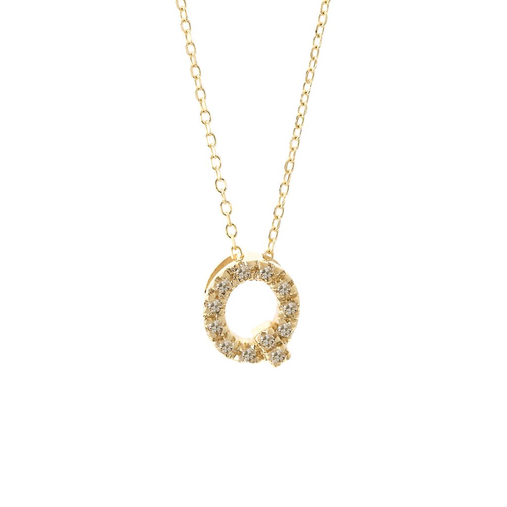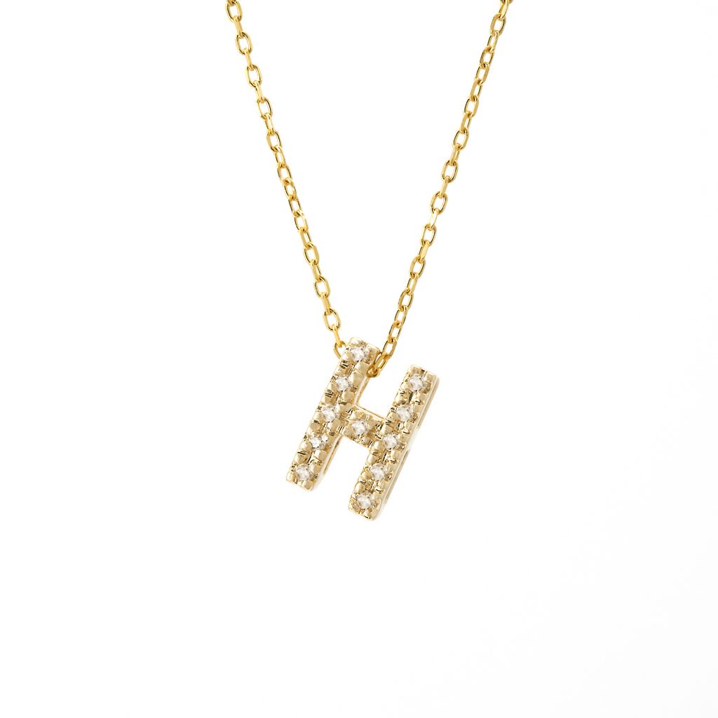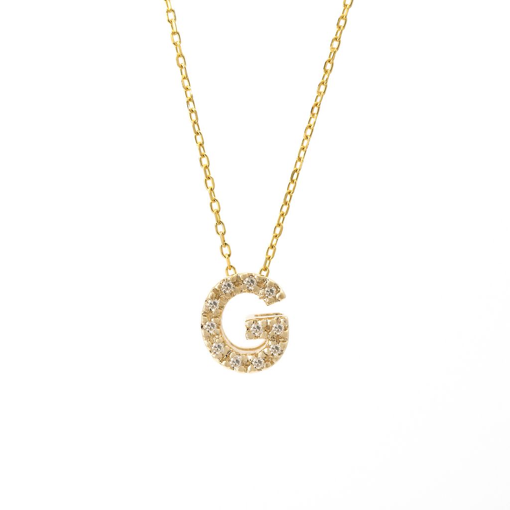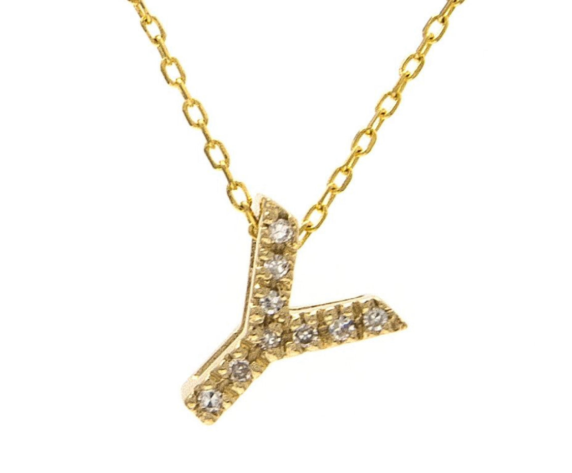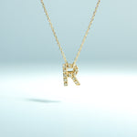 14K Solid Yellow Gold Initial Diamond Necklace
